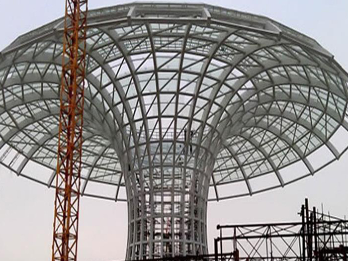 二、球形网架结构因其结构新颖,受力合理,自重轻、用钢量低等优点。如大型体育场馆球形盐城螺栓球网架、公共场馆球形网架、电厂盐城螺栓球网架、水泥工业球形网架、仓储物流球形网架、盐城干煤棚工业球形网架、盐城收费站盐城加油站球形网架、展览中心、影剧院、商场、航站楼、候车厅、工厂盐城车间、仓库、电视塔等球形螺栓球节点网架。国内球形网架结构主要分为:盐城焊接球节点网架及螺栓球节点网架两种。螺栓球节点网架其构件工厂内加工量较大,现场安装便捷,适用于现场工期紧,盐城施工条件、用电量受制约,网架形状复杂、盐城杆件定位困难的异形结构。螺栓球节点球形网架系统基本由盐城杆件、螺栓球、支撑支座等组成。按照节点形式可分为交叉盐城桁架体系、四角锥体系、三角锥体系等。支撑方式多为固定支座支撑。对于大面积、大跨度及有特殊受力或伸缩要求的网架结构可采用橡胶支座、滑移支座、球铰支座等支撑形式,以满足结构自身的受力稳定、均衡,便于内力释放等设计要求。